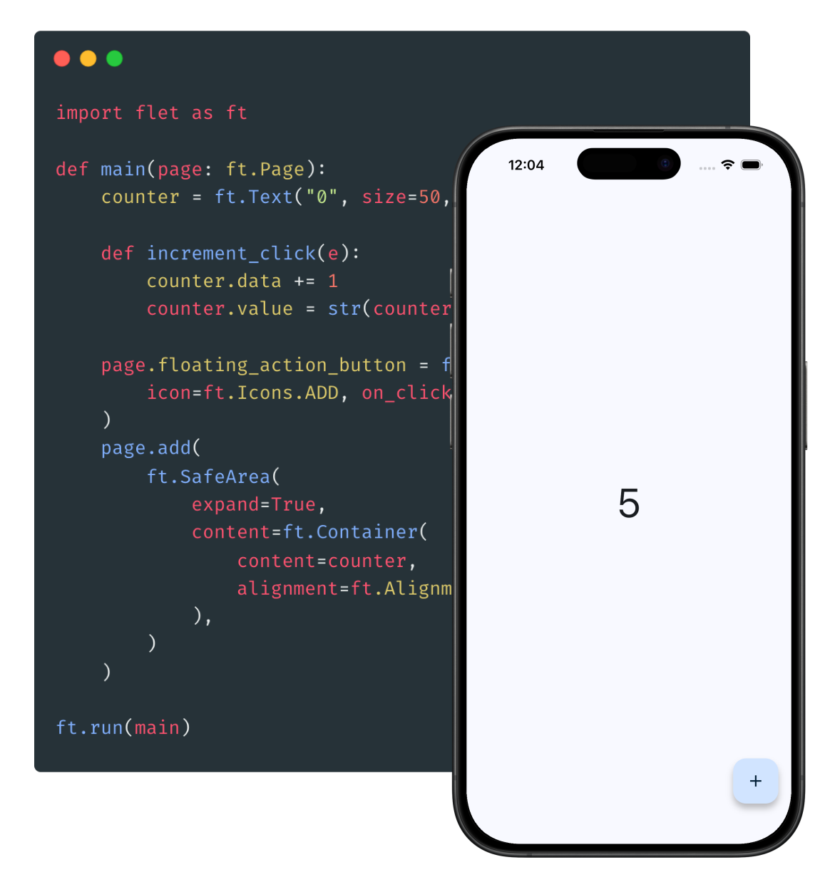 Test your project on your own mobile device with Flet App. See your app updates as you make changes.