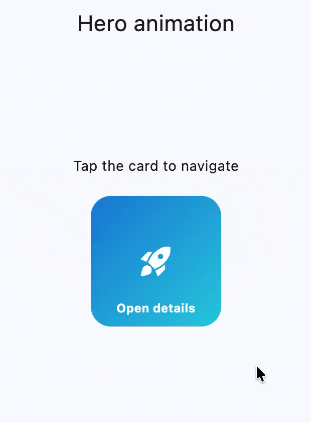 Hero animations add shared-element transitions between routes.