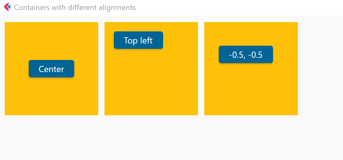 CENTER: AlignmentPropertyRepresents the center and is equivalent to Alignment(0.0, 0.0).